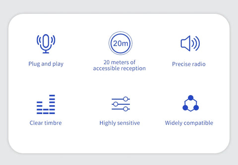 • Microfone de lapela: O microfone de lapela sem fio profissional foi projetado para ser usado como uma lapela, tornando-o fácil de usar e confortável de usar por longos períodos.